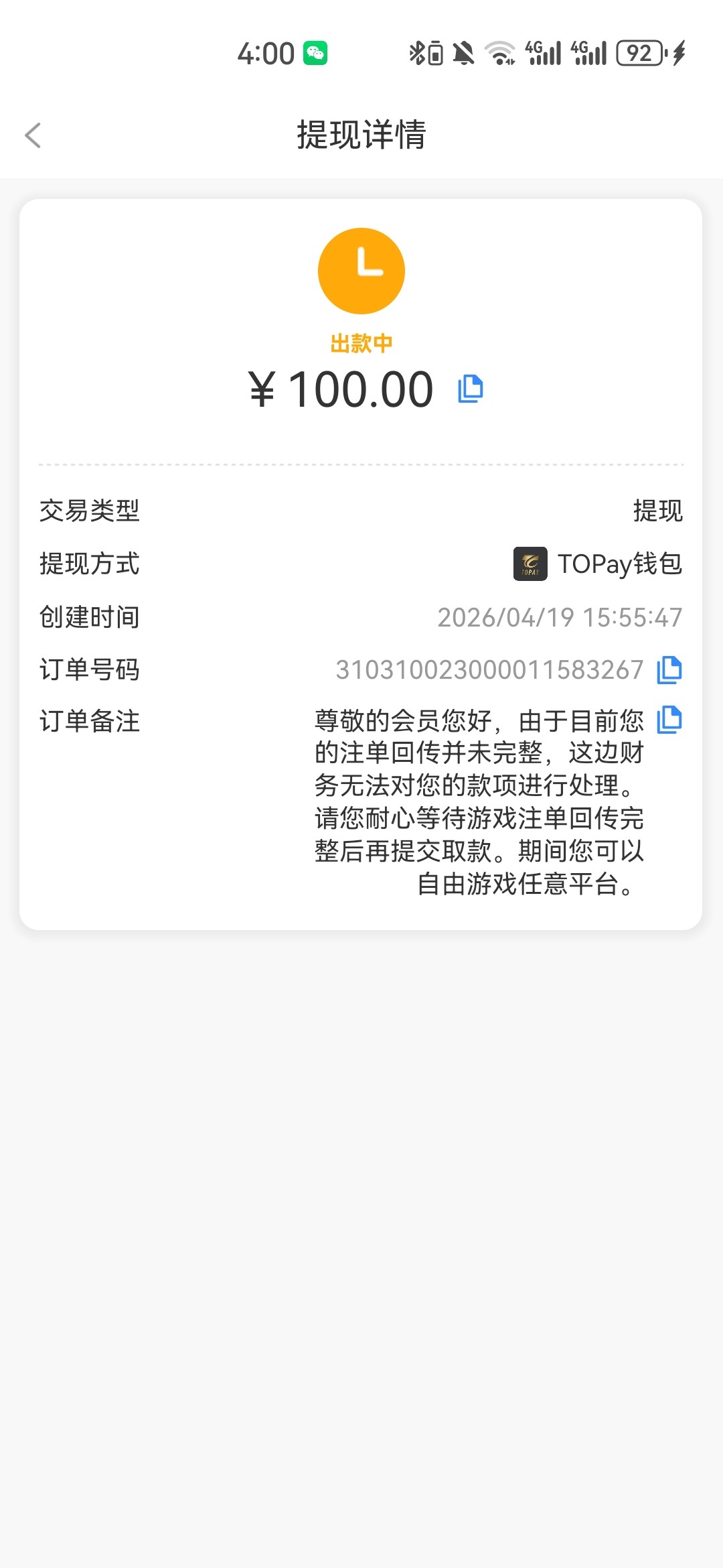 之前充值过800输了。一个月没充值了,就每天抢三次红包。提100都黑了。我别的平台提上千都没黑过。这垃圾平台提100都黑