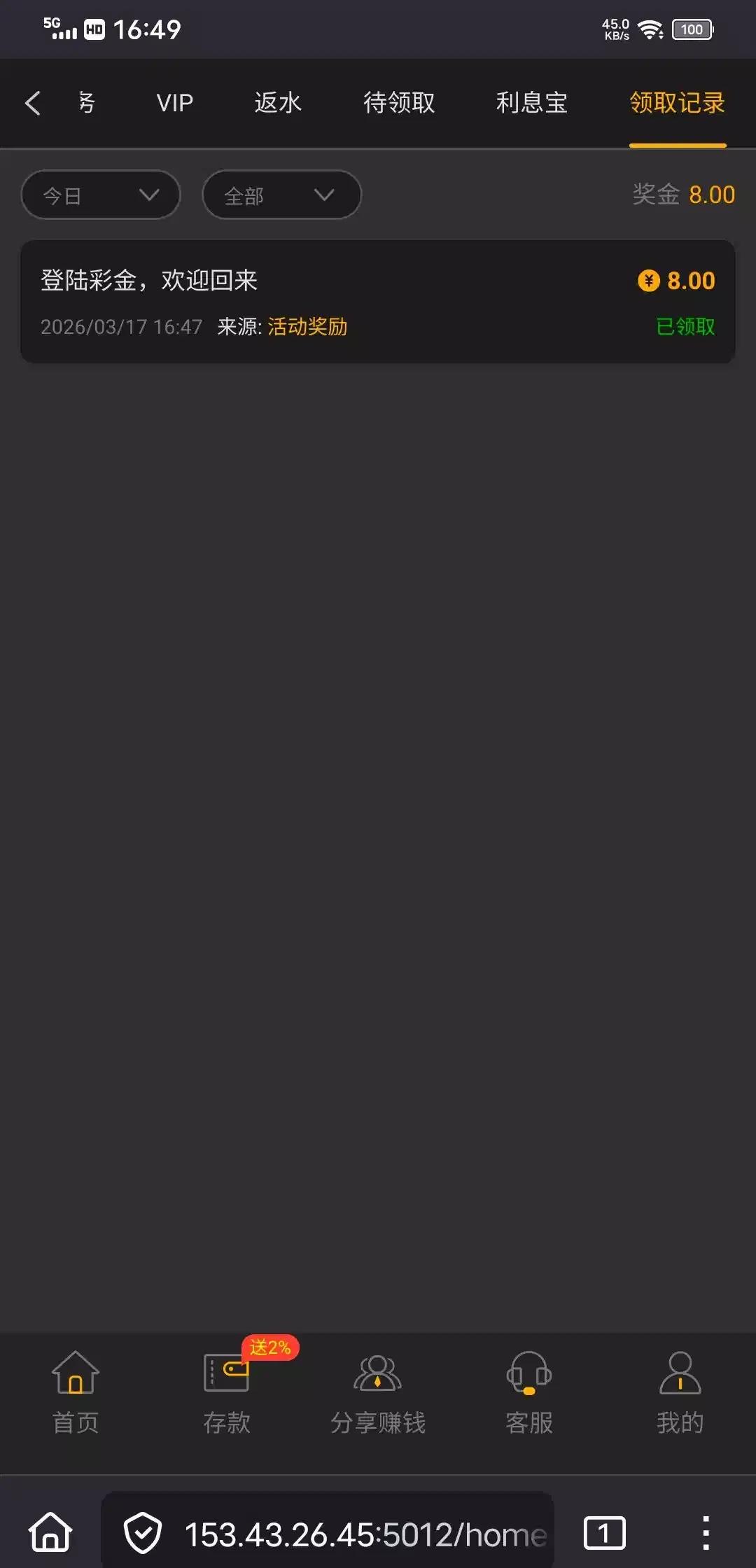 登录回归彩金,我领了8块得吃200已到账