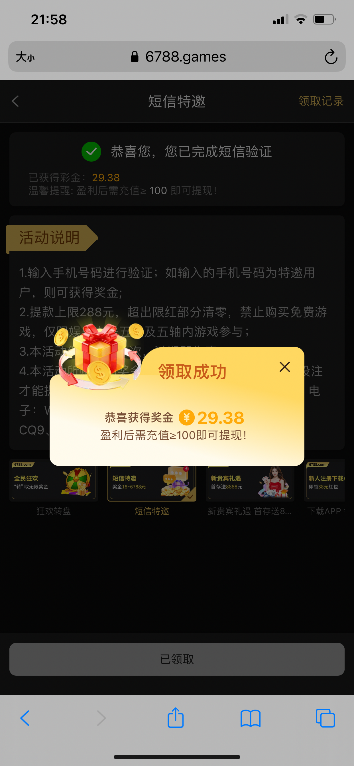 【新普京6788】短信彩金29